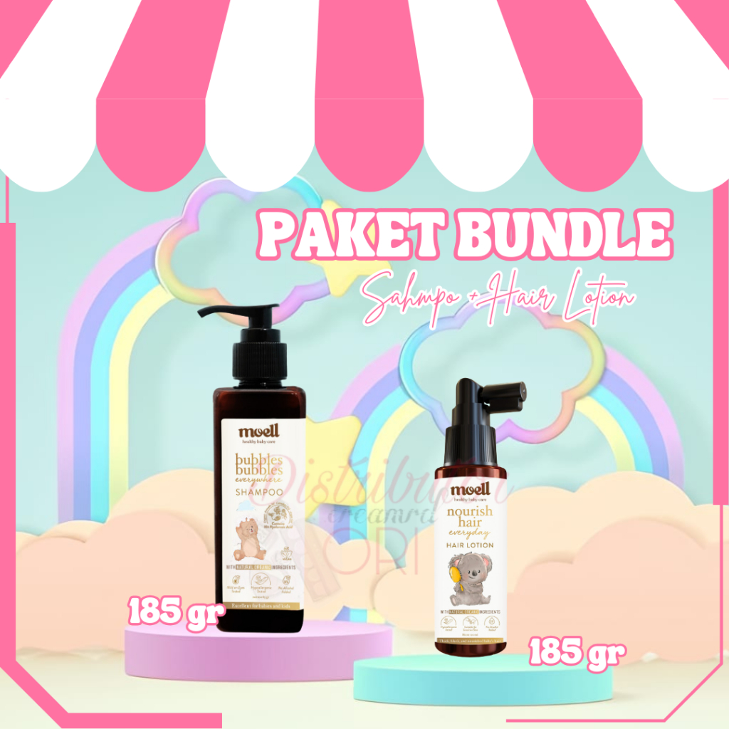 PAKET BUNDLE MOELL SHAMPOO 185GR + HAIR LOTION 185GR | BPOM |