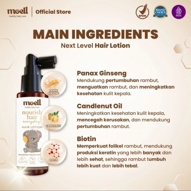 Moell - Hair Lotion 100ml / Nourish Hair Everyday / Natural care for babies / Hair Lotion for babies & kids