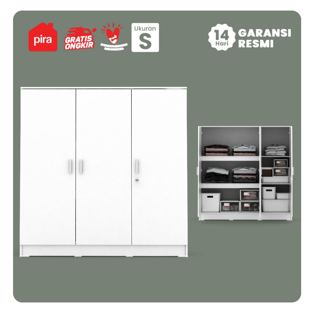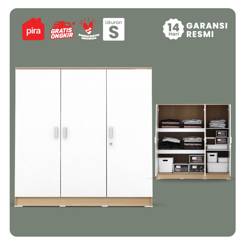 [Star]PIRA METROPOLIS OX - ARUNA BLS120 Lemari Pakaian 3 Pintu Full Rak