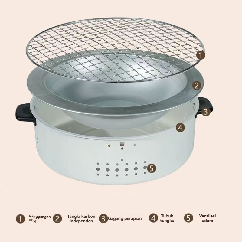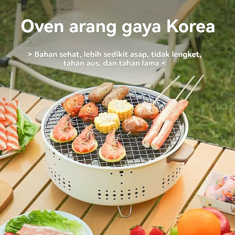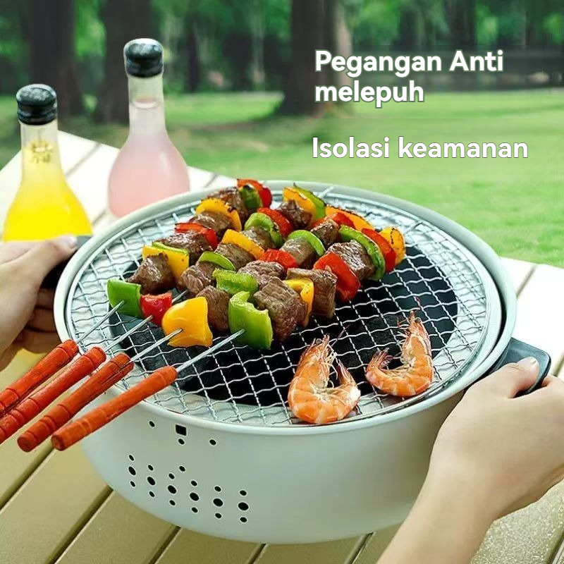 Promo Panggang Barbeque Bulat Portabel/Multi-fungsi Pemanggang Sate/Panggang BBQ/Pemanggang Arang Kecil/Pemanggang Air。