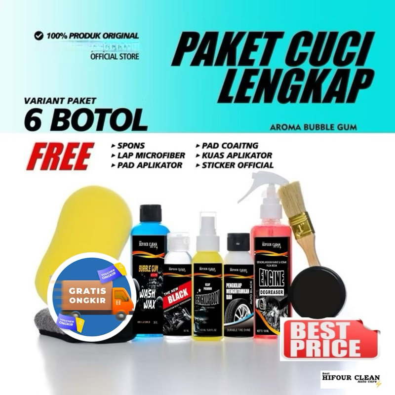 PAKET CUCI MOTOR MOBIL / PAKET CUCI KENDARAAN LENGKAP FULL BODY 5 ITEAM by FOURCLEAN Auto Care