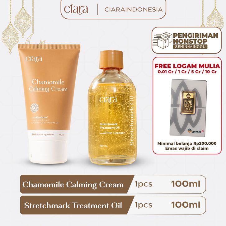 Ciara Chamomile Calming Cream X Stretchmarks Treatment Oil Penghilang Bekas Luka Bekas Luka Krim Penghilang Bekas Luka S