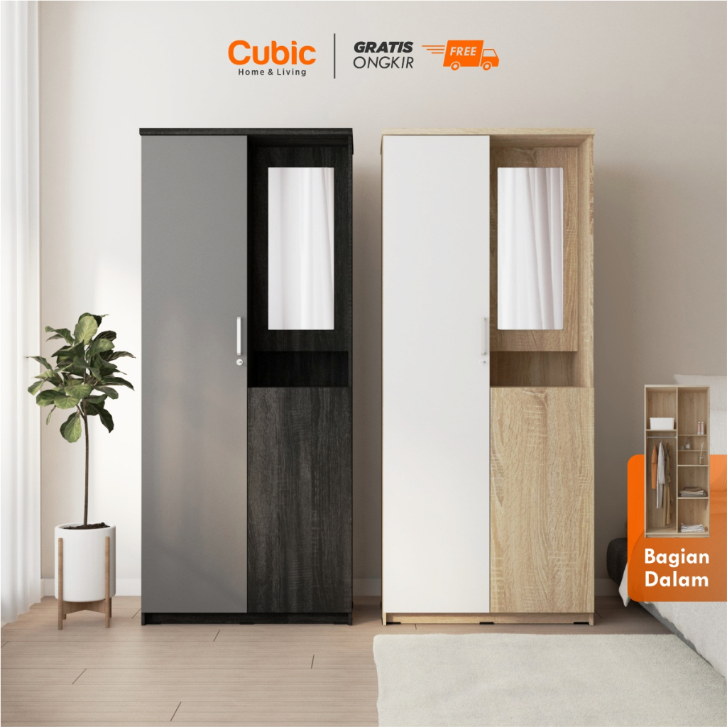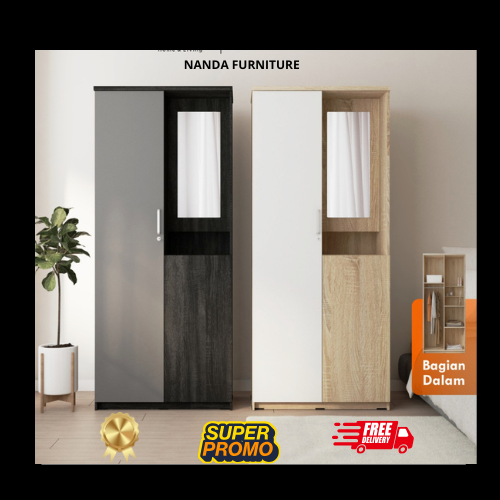 [Mall] Lemar Baju Kayu 2 pintu kaca Aesthetic/Lemari pakaian Kayu Modern Minimalis
