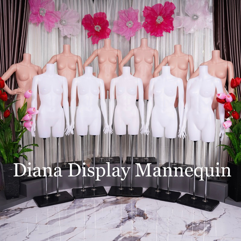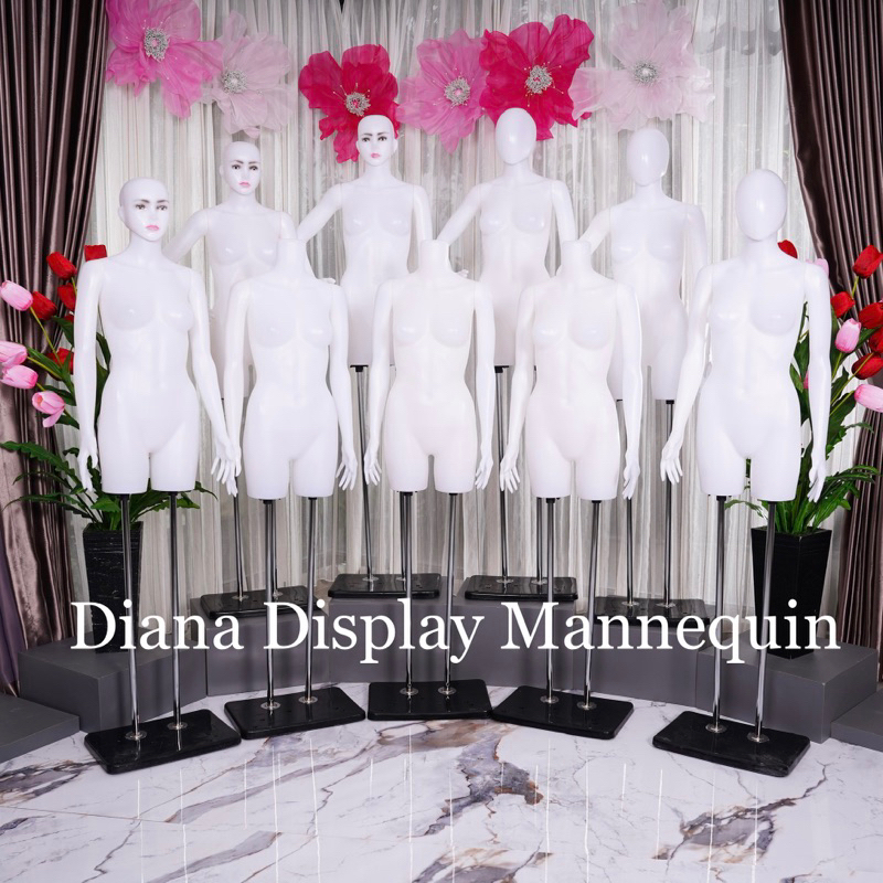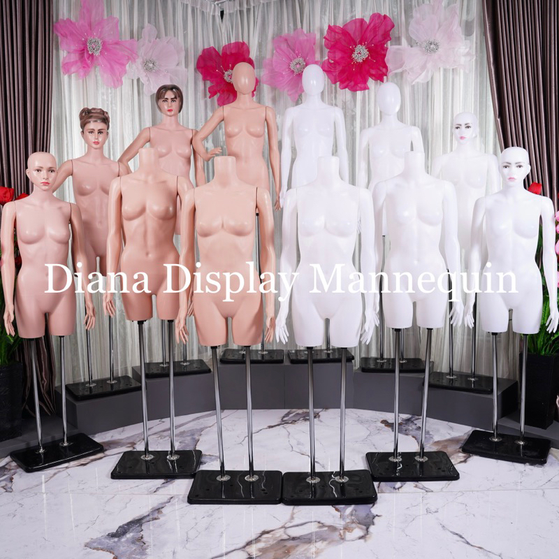 PATUNG MANEKIN BODYFIT WANITA 1 SET LENGKAP DENGAN BESI PENYANGGA KEPALA DAN TANGAN PLASTIK SET TIANG BESI