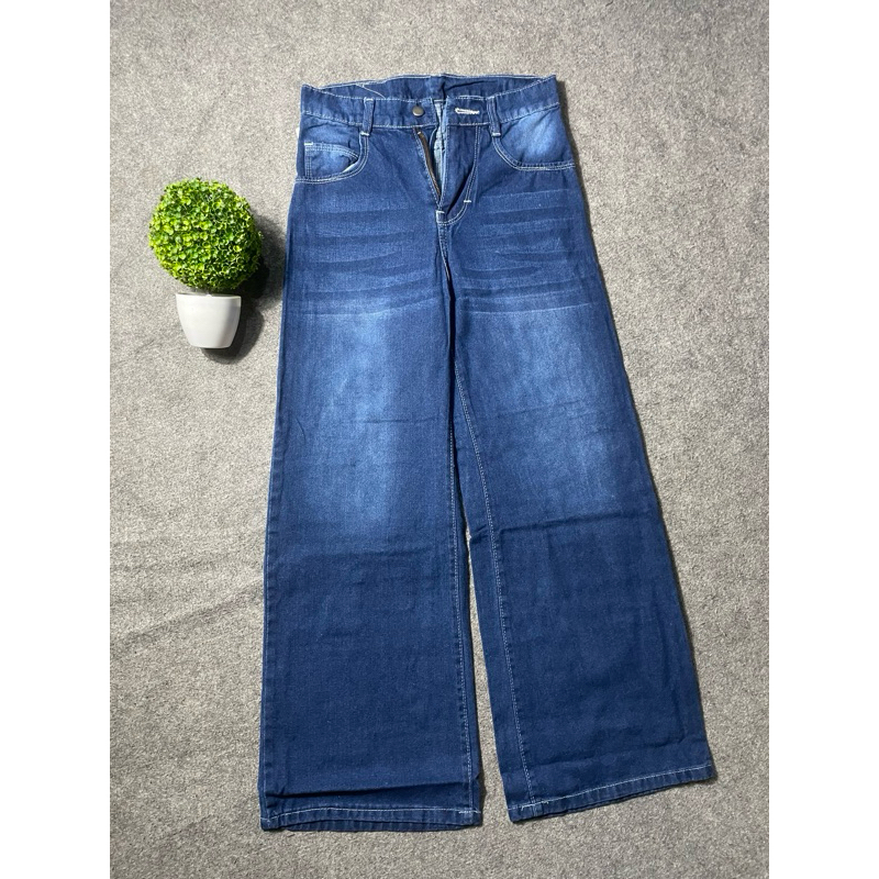 Celana Highwaist Baggy Jeans Loose Wanita Panjang skena Jeans Gombrong Wisker