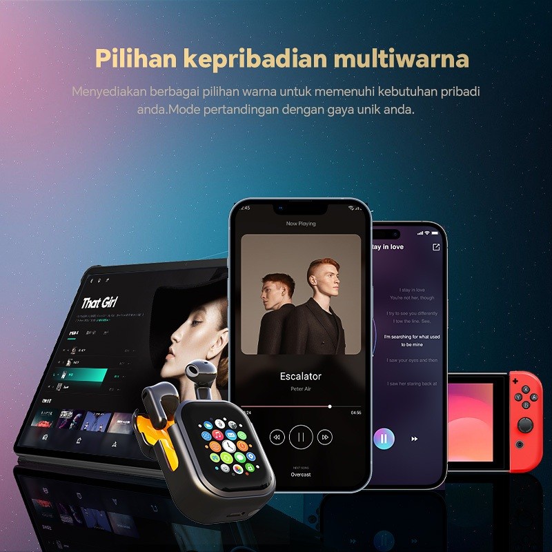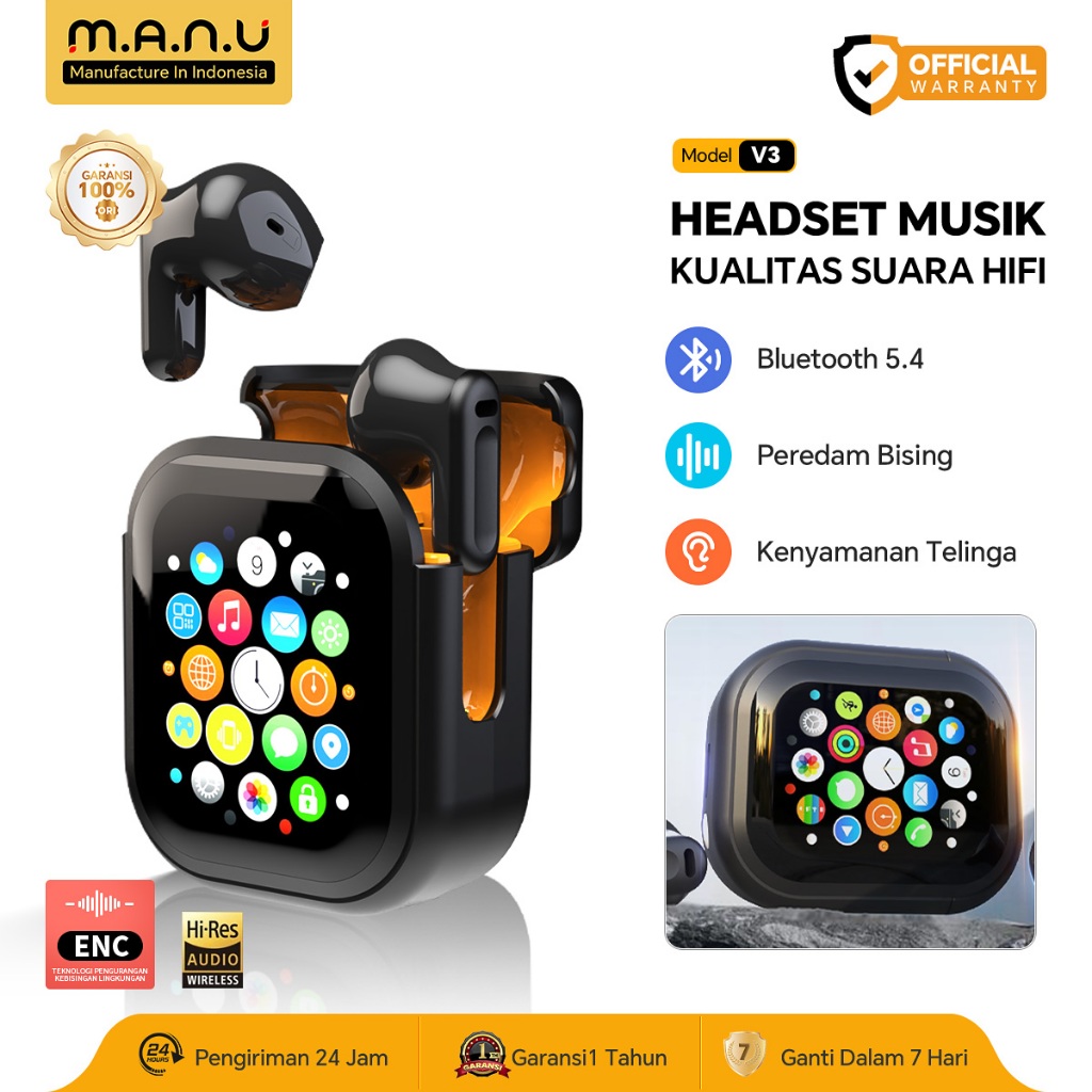 Manu AI Smart Wireless Bluetooth Headset V5.4 TWS Noise Reduction Headphone LED Full Color Touch Screen Earphones Suara