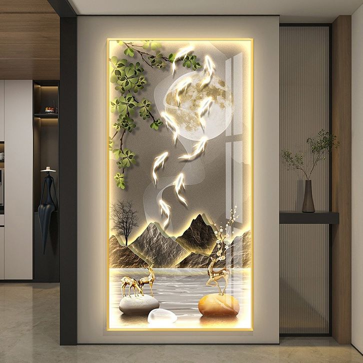 Lampu Dinding Ruang Tamu Modern Minimalis Lukisan Jam Dinding Krystal Porselin 5d Luxury Walldecor Led Cahaya Hangat