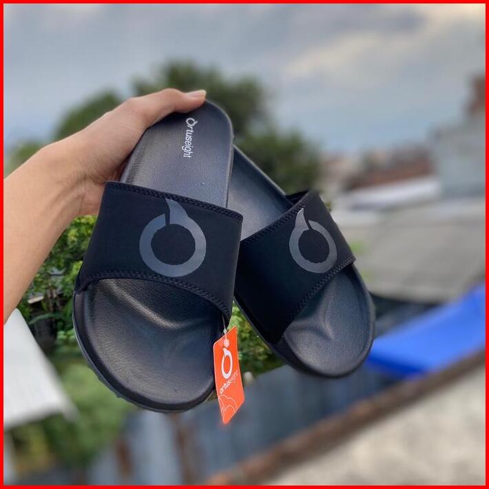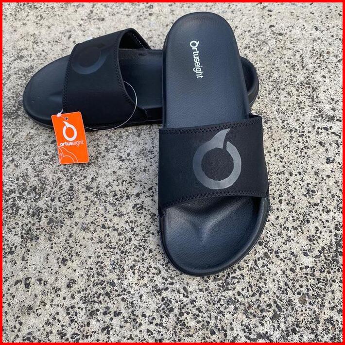 Sandal Selop Ortuseight Fullblack Terbaru Shoes Pria Dalam Ruangan Luar Ruang Sendal