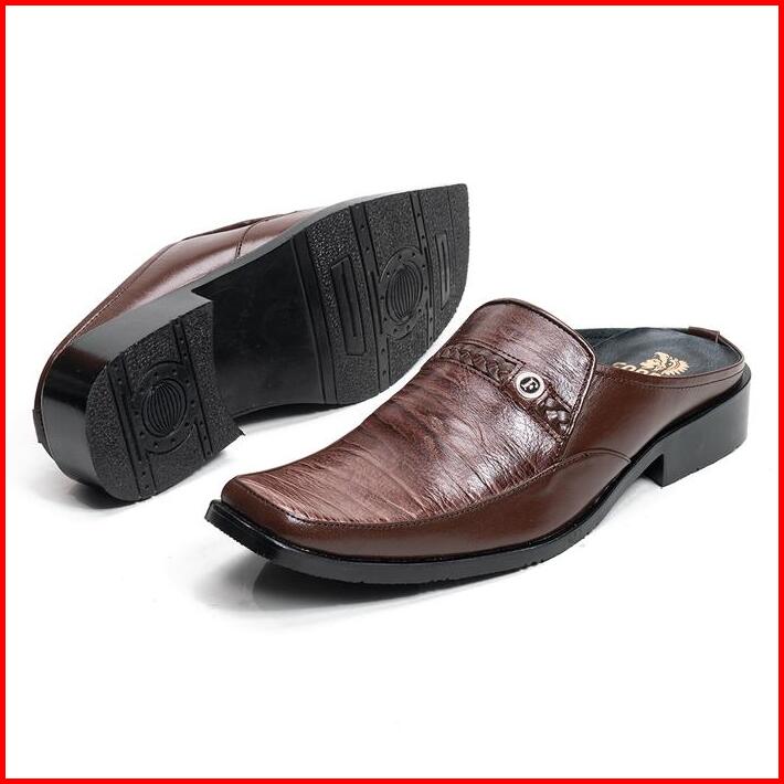 Sandal Slop Pria Bustong Kulit Asli Sepatu Sendal Cowok F8012