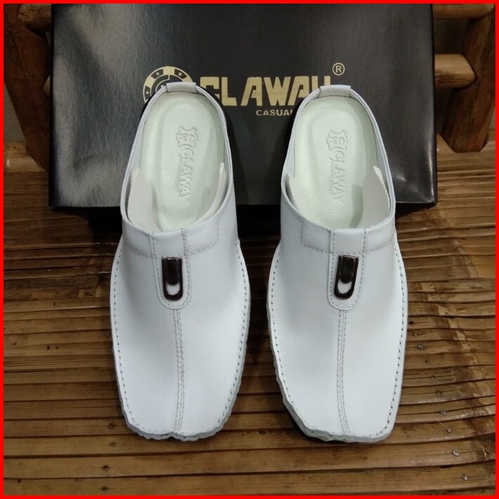 Sepatu Sandal Pria Putih Kulit Asli