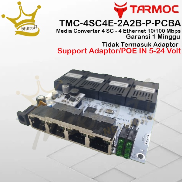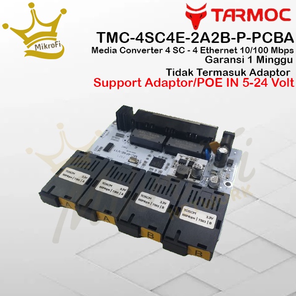Tarmoc TMC-4SC4E-2A2B-P-PCBA | Media Converter Switch 4FO 4LAN / 4 FO 4 LAN 10/100Mbps POE IN 5-24 Volt | 4SC 4LAN / 4 S