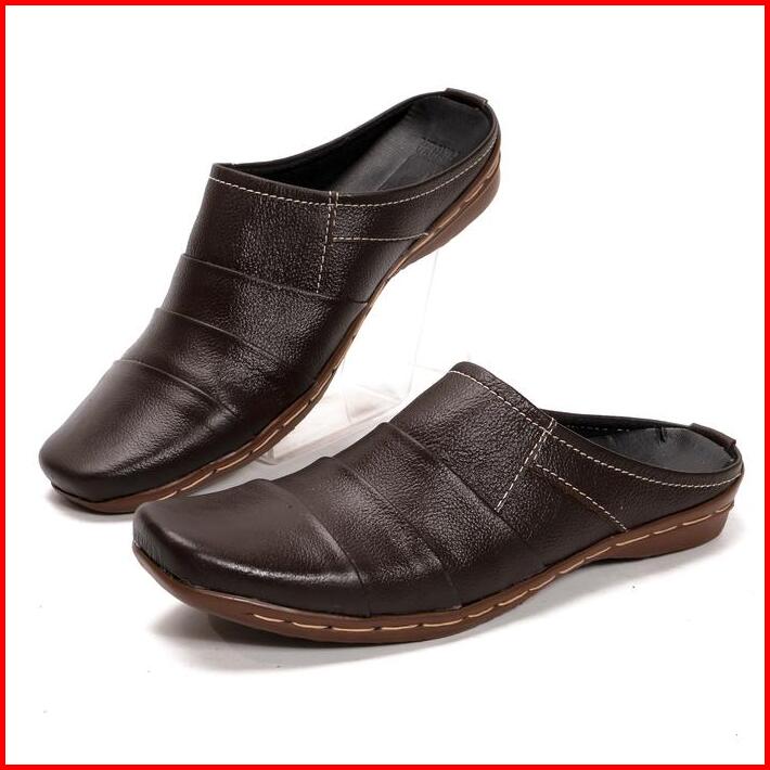 Sepatu Slop Pria Bustong Slip On Sepatu Sandal Kulit Asli Ar04