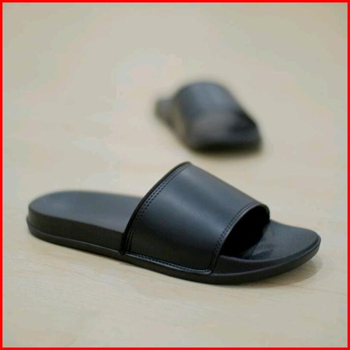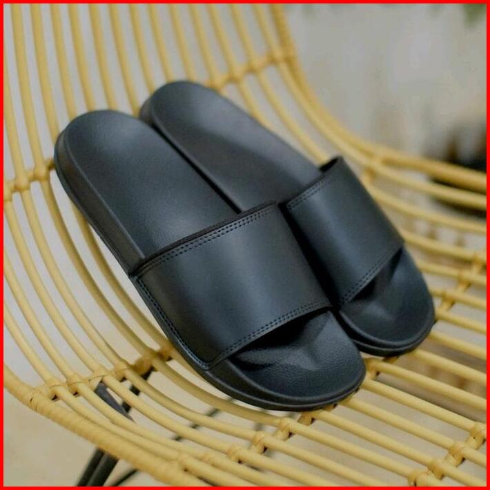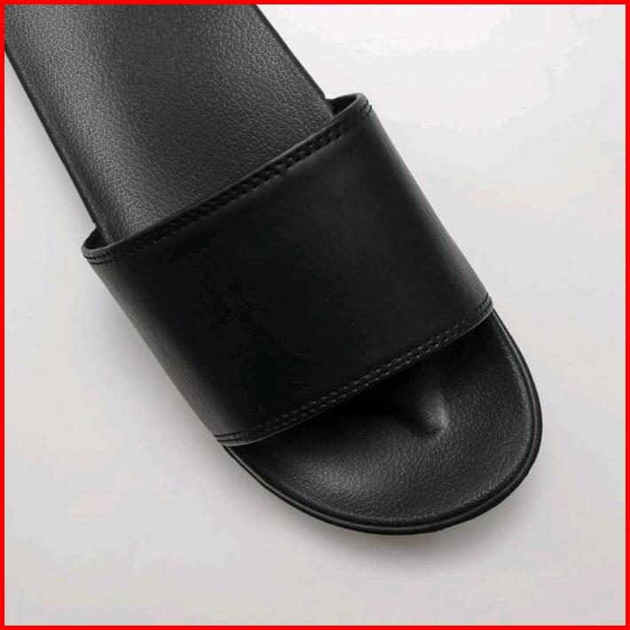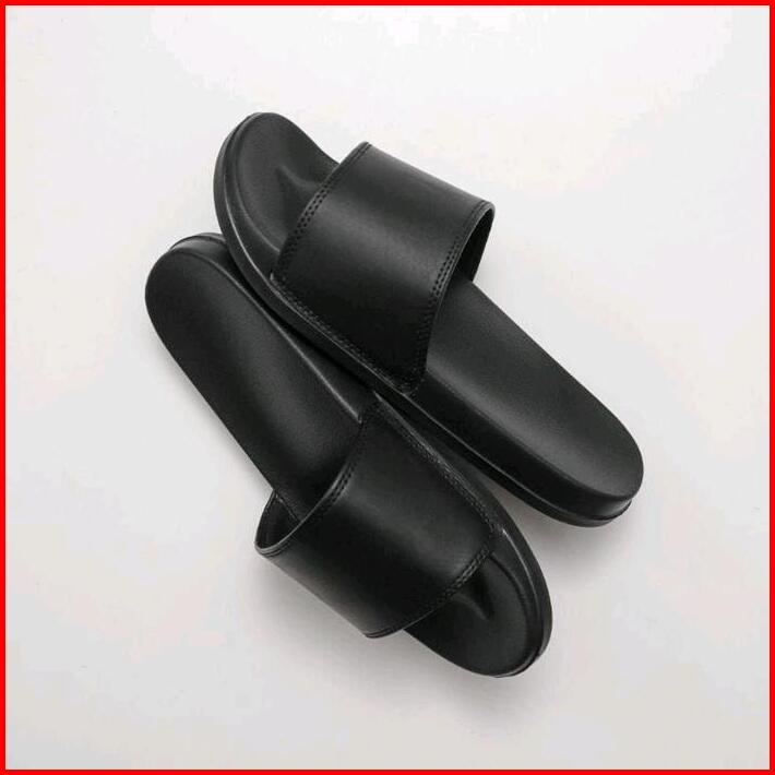 Sandal Slop Hitam Trendi Ringan Anti Slip Sendal Santai Rumahan Tahan Air Black Shoes Pria Karet Selop Polos