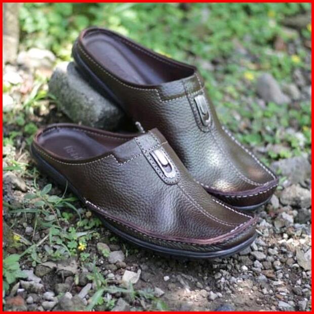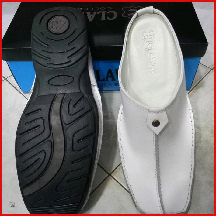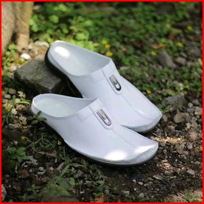 Grosir Termurah Sandal Sendal Sepatu Tutong Bustong Slop Slipon Slip On Selop Pria Cowok Kulit Sapi Terbaru Hitam Putih