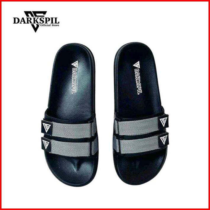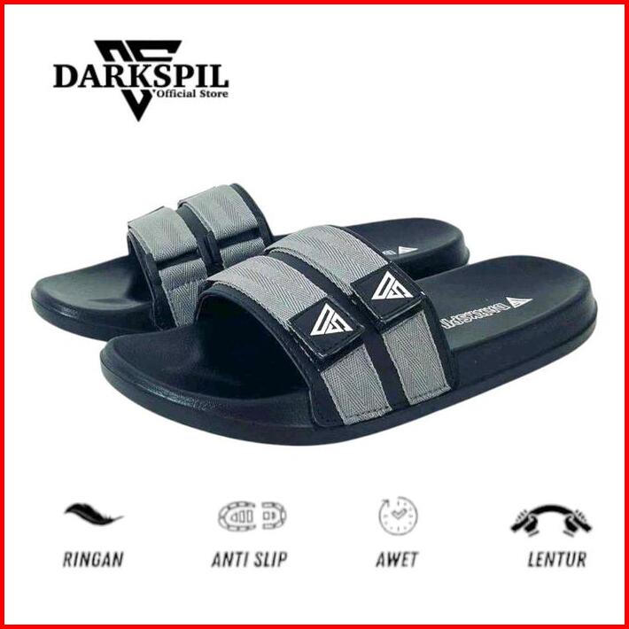 Sandal Selop Hitam Tali Abu Velcro Distro Ds 021 Pria Wanita Outdoor Indoor Shoes Casual Black Sendal