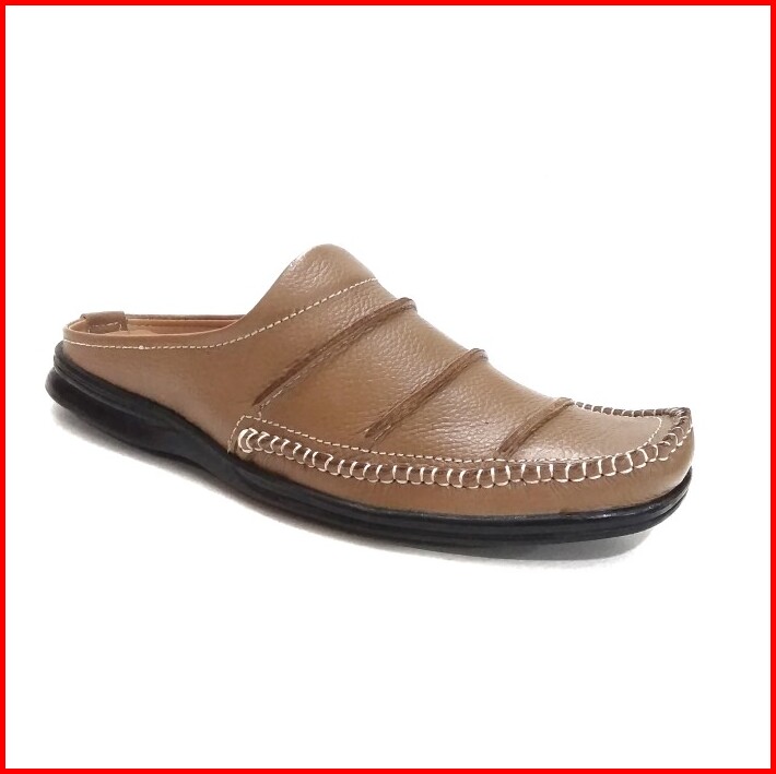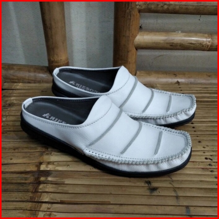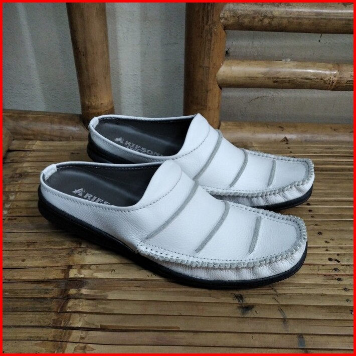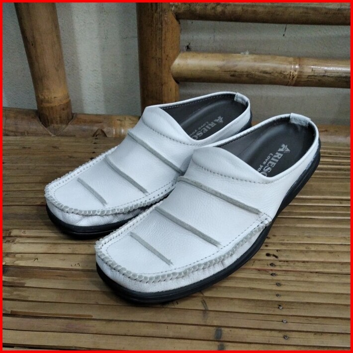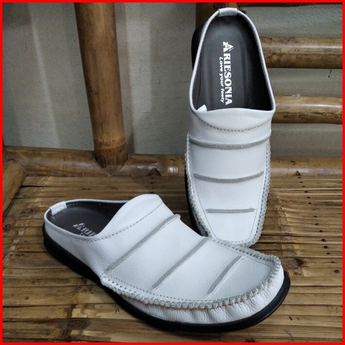Sepatu Sandal Pria Model Selop Bustong Putih Pria Kulit Asli Arb007