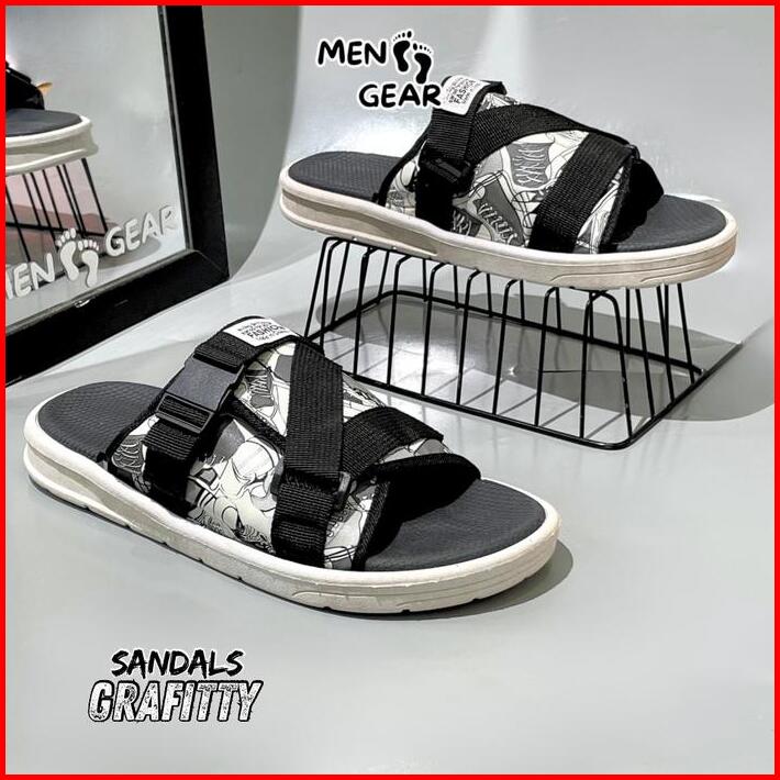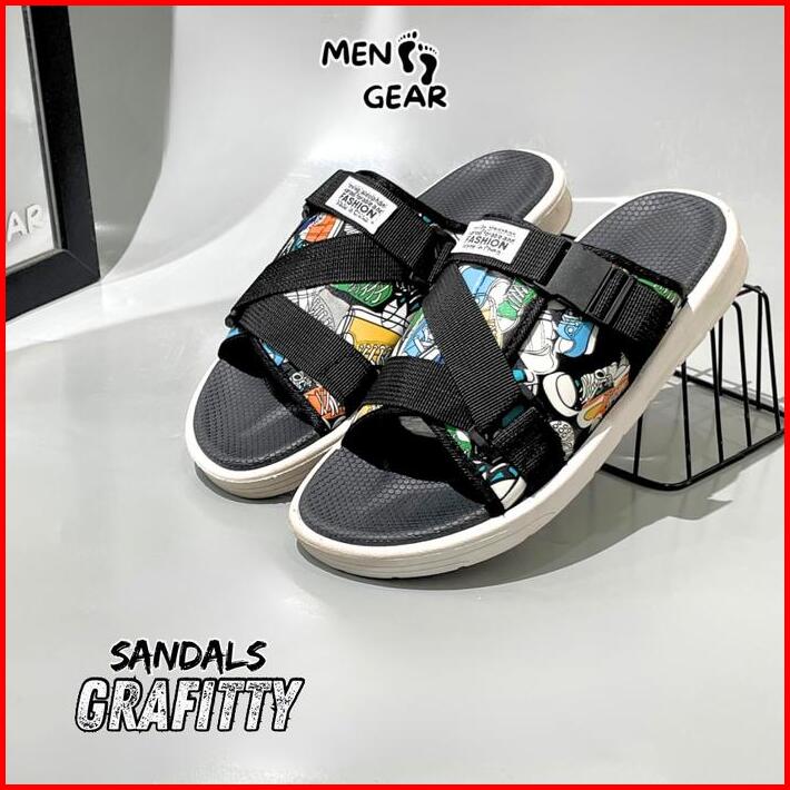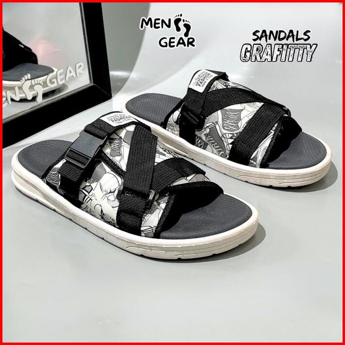 Menfootgear Grafitty Sandal Pria Sepatu Sendal Cowok Karet Empuk Gunung Outdoor Hitam Coklat