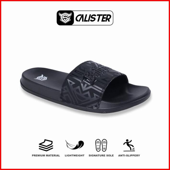 Calister Sandal Selop Pria Full Hitam Evolution Font Shoes Karet Sendal Antiselip Simpel