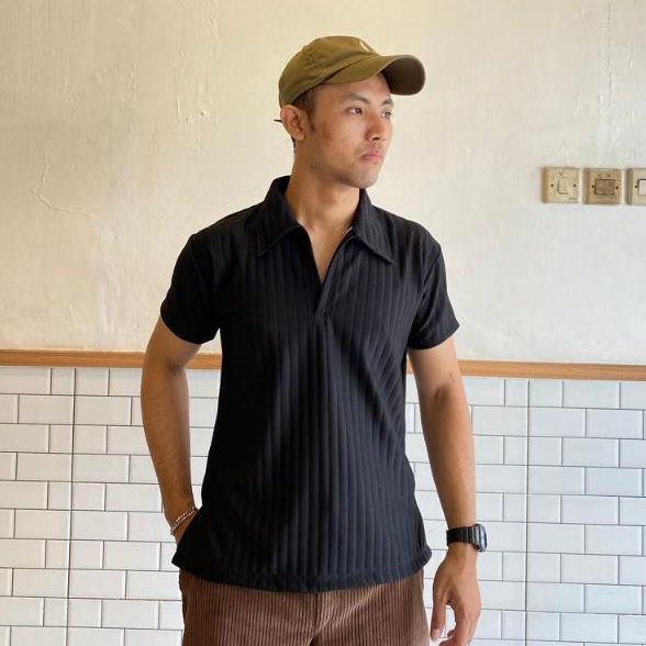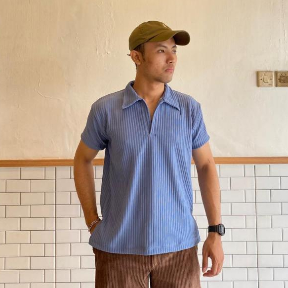 (Gratis Ongkir) kaos polo pria Korean Knit Baju Polo Shirt Pria Salur Besar Dengan Cutting Slim Fit Kerah Pendek