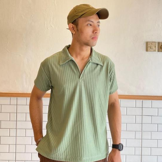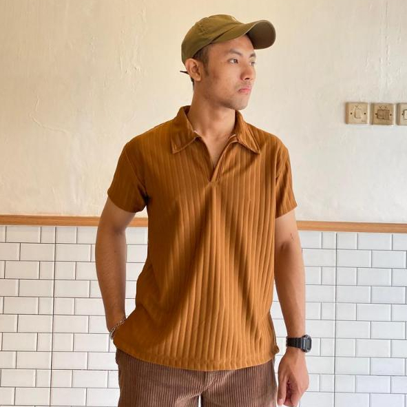(Gratis Ongkir) kaos polo pria Korean Knit Baju Polo Shirt Pria Salur Besar Dengan Cutting Slim Fit Kerah Pendek