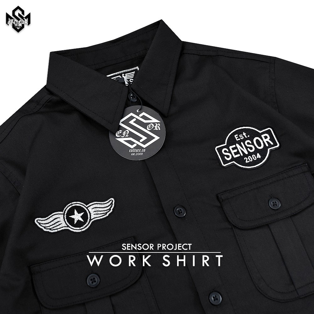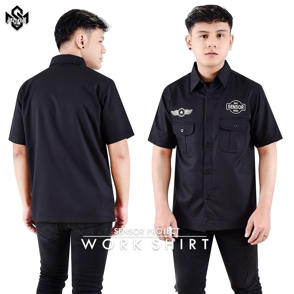 Kemeja Workshirt Pria Original Sensor Kemeja Lengan Pendek Kemeja Casual Formal Basic Hitam