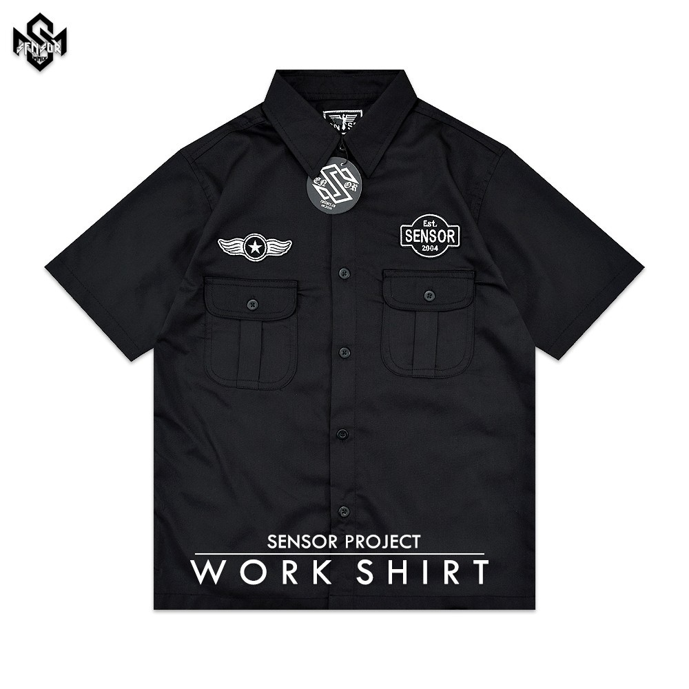 Kemeja Pria Lengan Pendek Kemeja Workshirt Hitam Kemaja Kantor Kemeja Formal Original Sensor