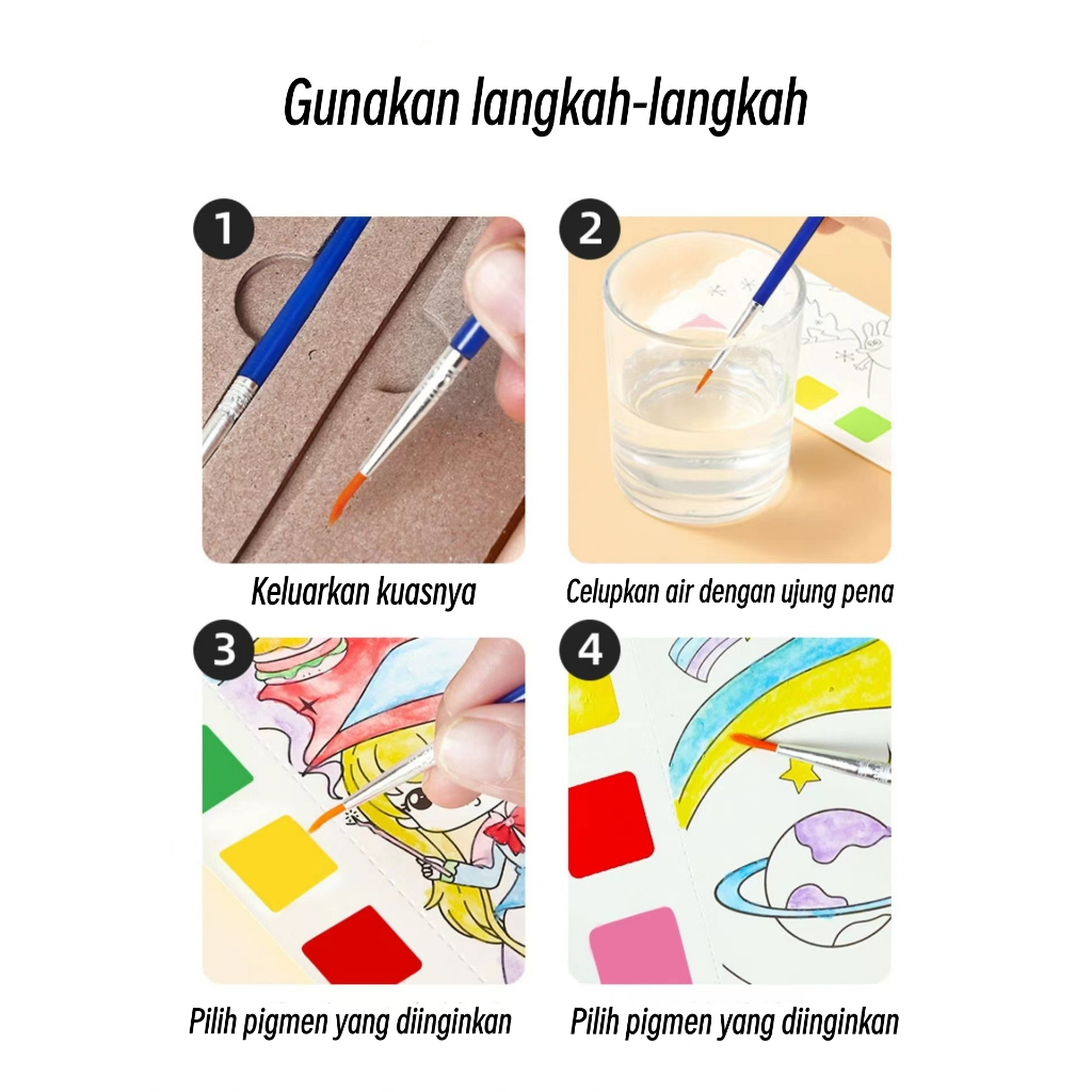 Mainan Buku Cat MEWARNAI Watercolor Painting Book Bahan Berkualitas Premium
