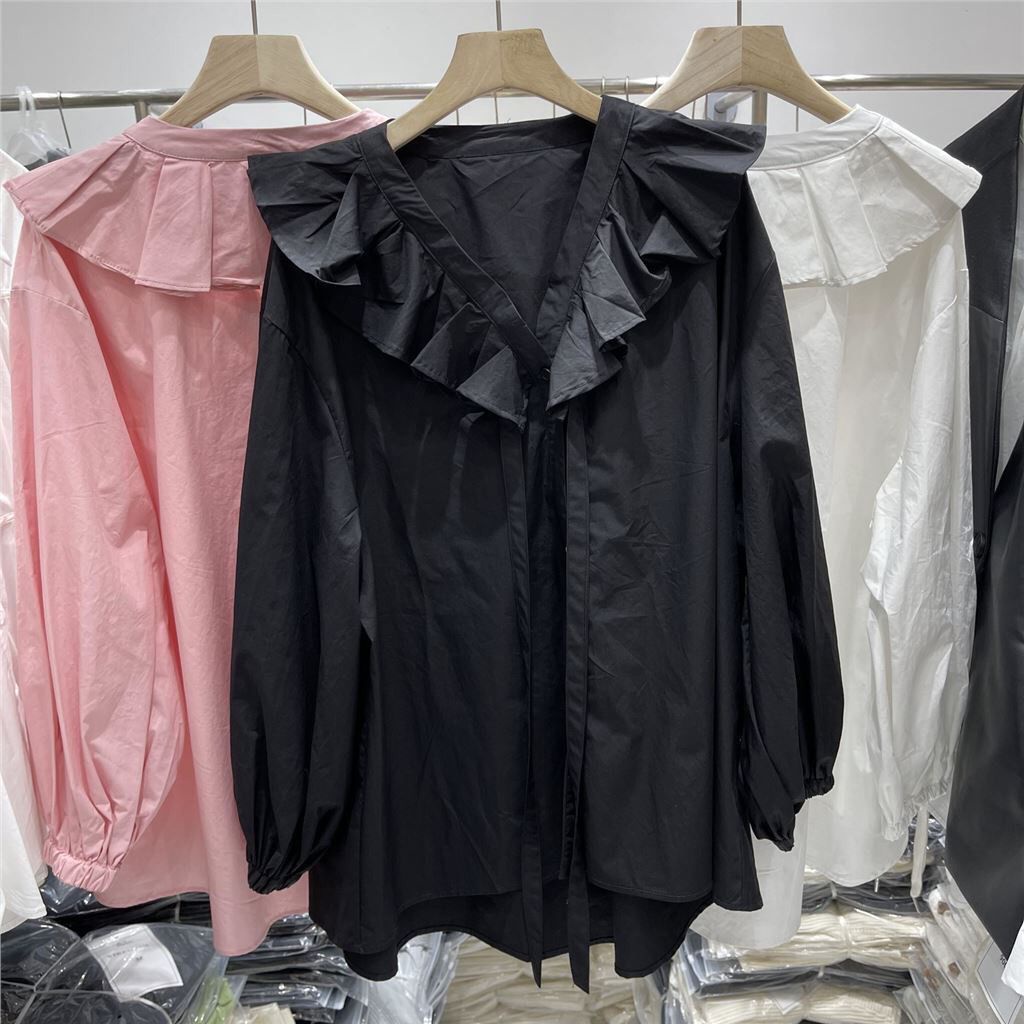 (Gratis Ongkir) Jisoo Top Blouse Ruffelia Collar Atasan Shirt Remaja Wanita Korean Style Muslim Premium - Blouse V