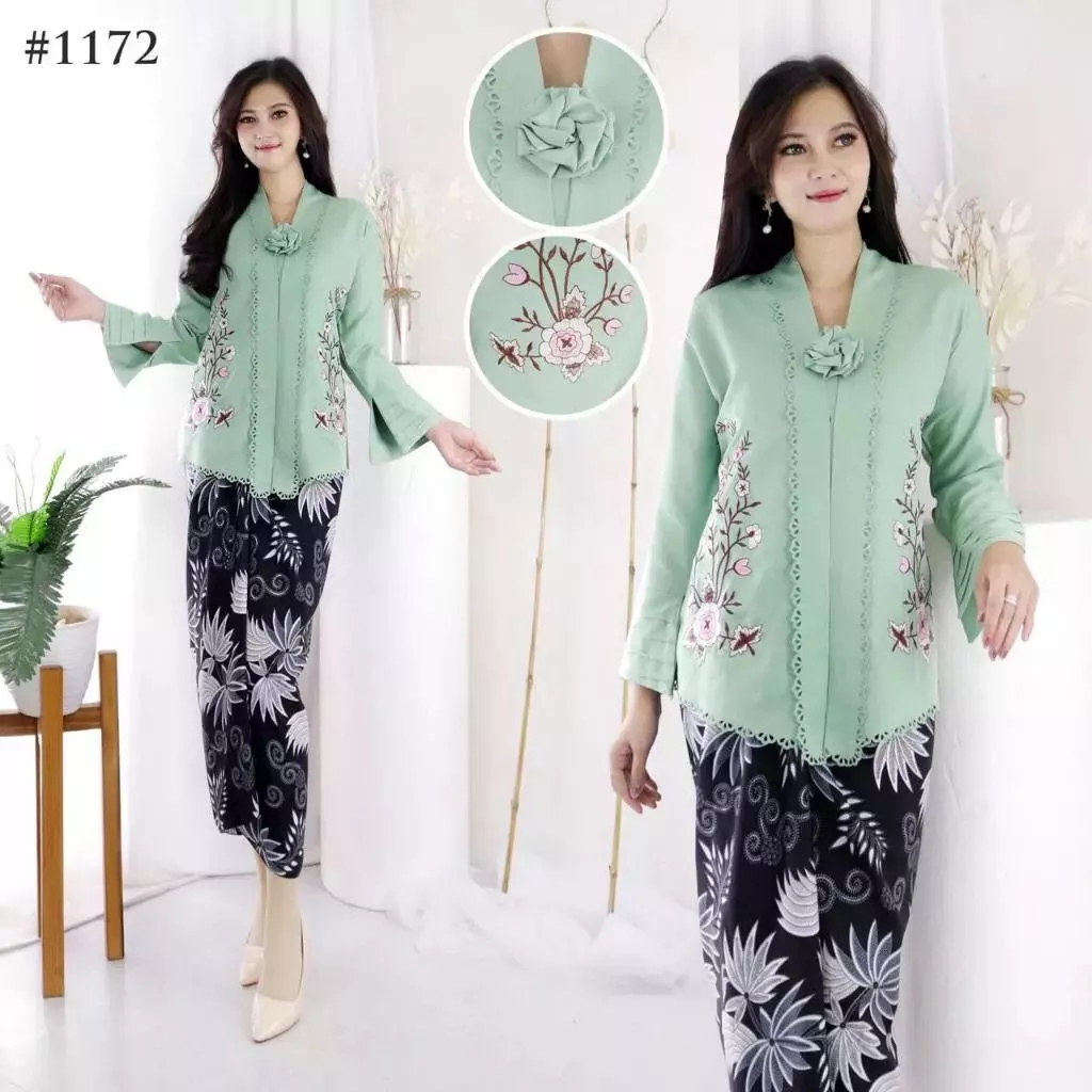 Kebaya Modern Terbaru Kebaya Encim Senada Aplikasi Laser Cut Bordir Motif Bunga Lengan Panjang Kebaya Wisuda Kondangan