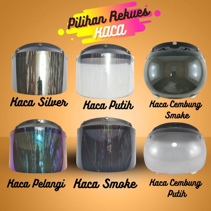 Flat Putih , Flat Smoke, Flat Silver , Flat rainbow/ pelan, Cembung smoke , Cembung clear