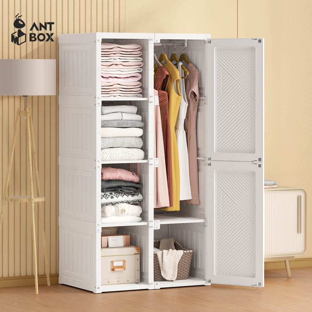 PROMO ANTBOX Lemari Pakaian Putih 8 Box 1 Gantungan 470L Wardrobe Putih Lemari Lipat Tebal Pintu Magnet