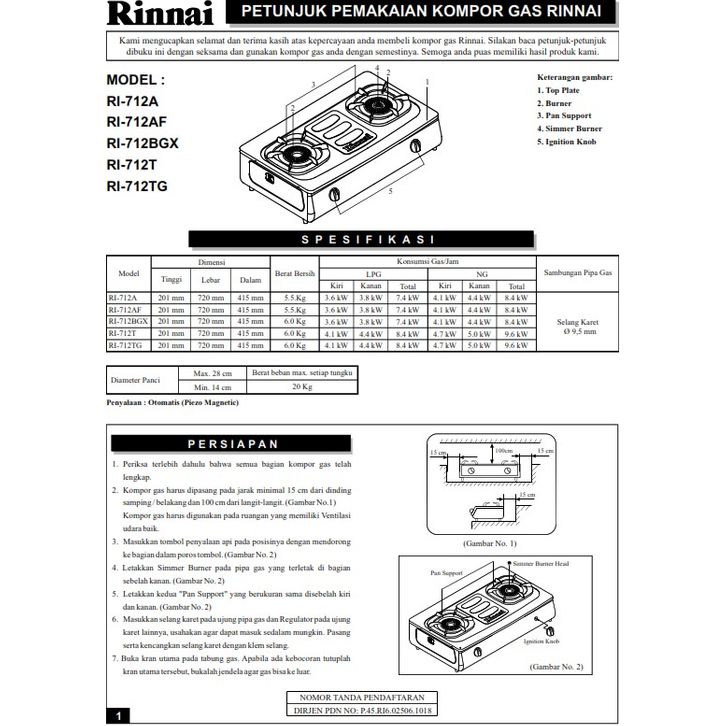 Rinnai RI 712 A Kompor Gas Portabel Grande Series 2 Tungku