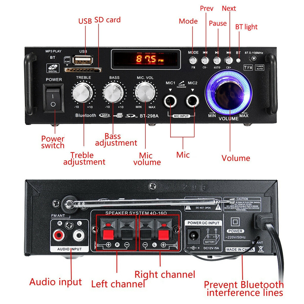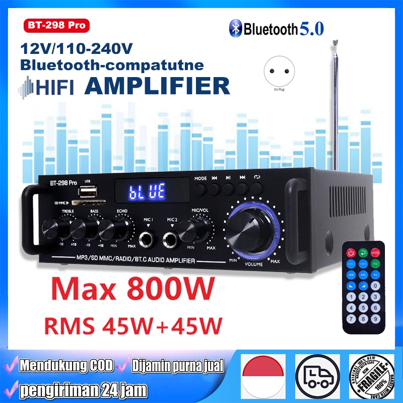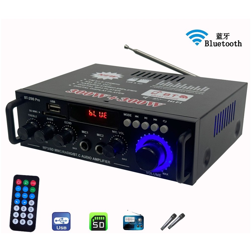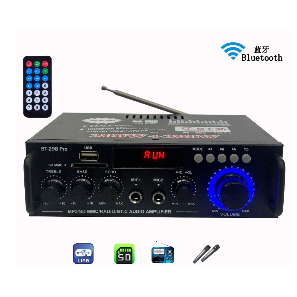 AMPLIFIER BLUETOOTH SUBWOOFER / BT-298PRO POWER AMPLIFIER BLUETOOTH 5.0 AUDIO AMPLIFIER 300W+300W KARAOKE HOME THEATER