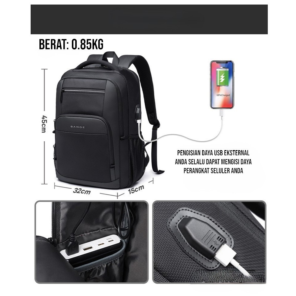 Tas Ransel Waterproof / Tas Ransel Tahan Air / Ransel Port USB / Tas Backpack Bange / Ransel Kantor Sekolah