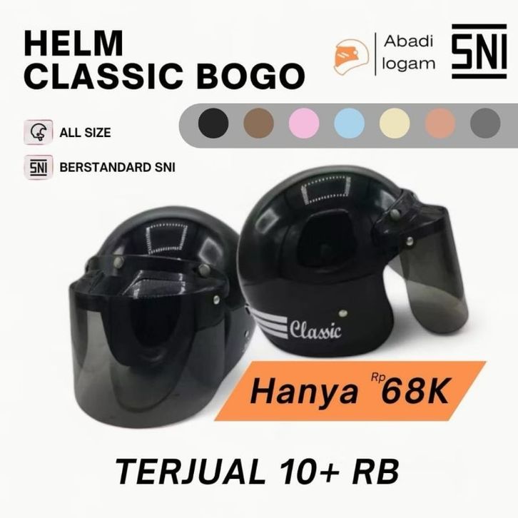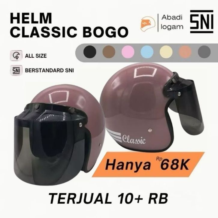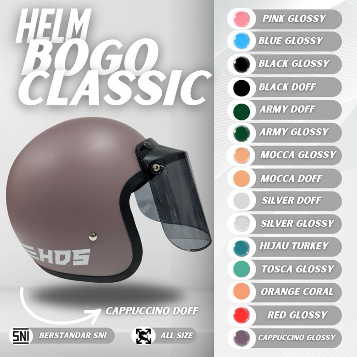 HELM BOGO CLASSIC DEWASA HALF FACE SNI HDS HELMET Retro Pria Wanita Cepol Hijab