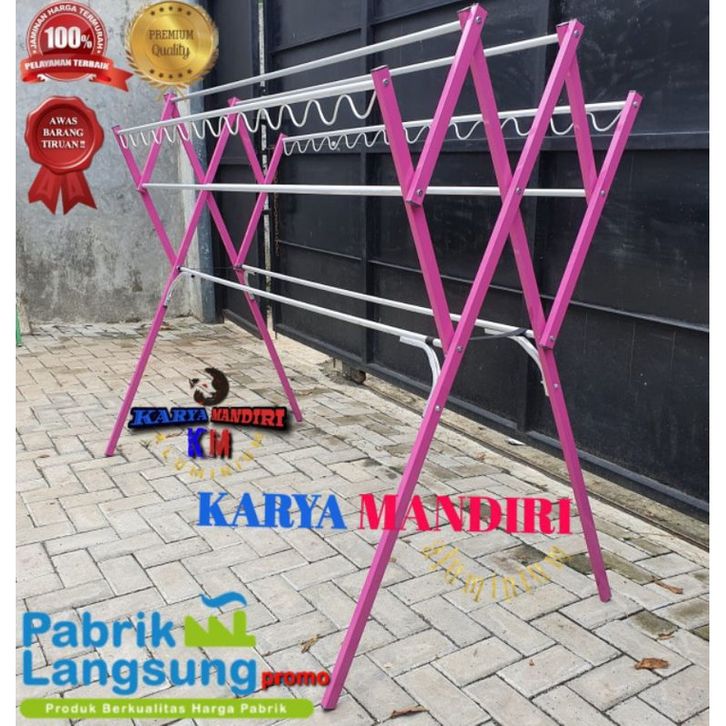 Jemuran Baju Lipat Aluminium Super Jumbo 180cm – Warna Pink | Ringan, Kuat & Anti Karat