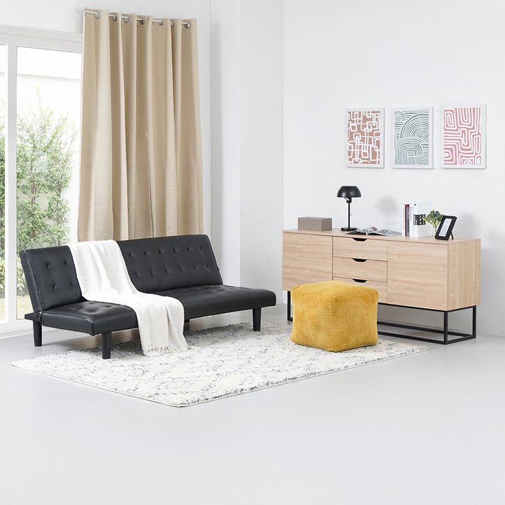 Neo Glasgow Sofa Bed Kulit - Hitam Tempat Duduk Multifungsi Sofa Tidur 2In1 Kursi Santai