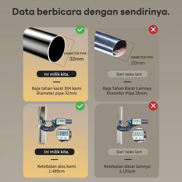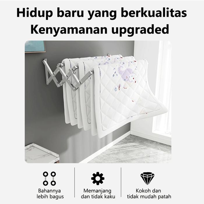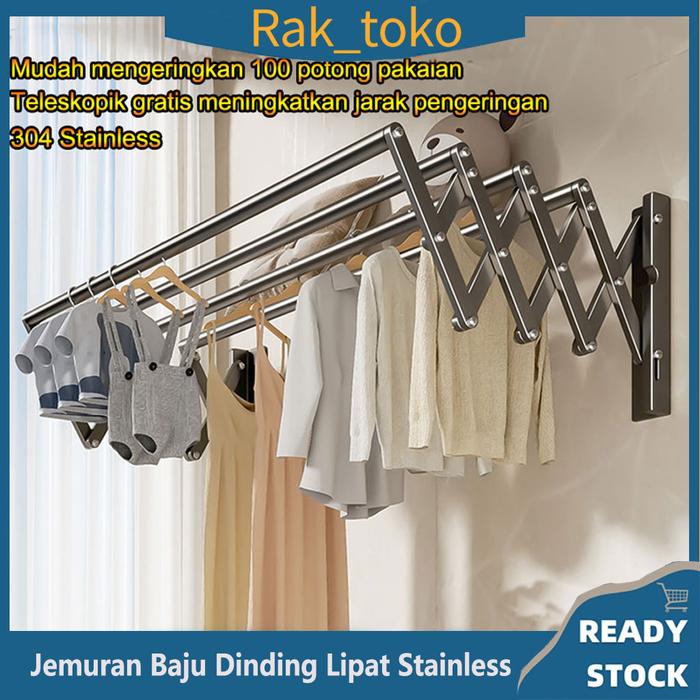 Single Jemuran Baju Dinding Lipat Stainless Steel Gantungan Pakaian besi pipa - 100 cm tiga tabung