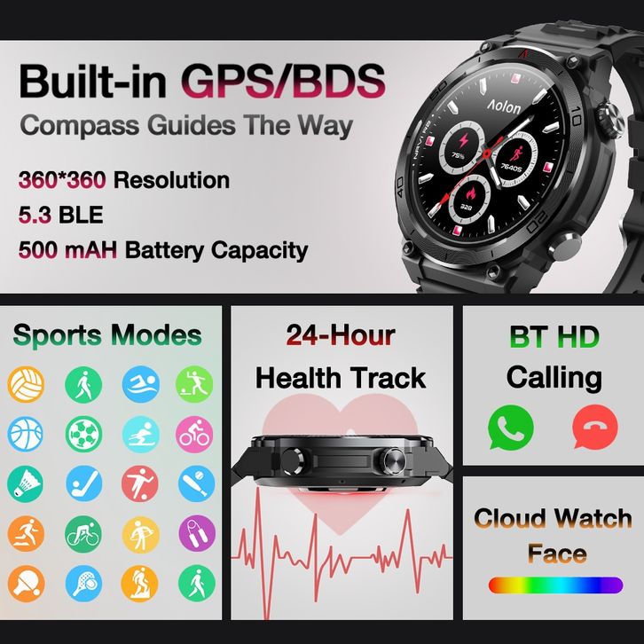 Aolon Navi R2 GPS Smartwatch Tracking Map 500mAh 7-Days Usage Time IP68 Waterproof Bluetooth Call Smart Watch Pria