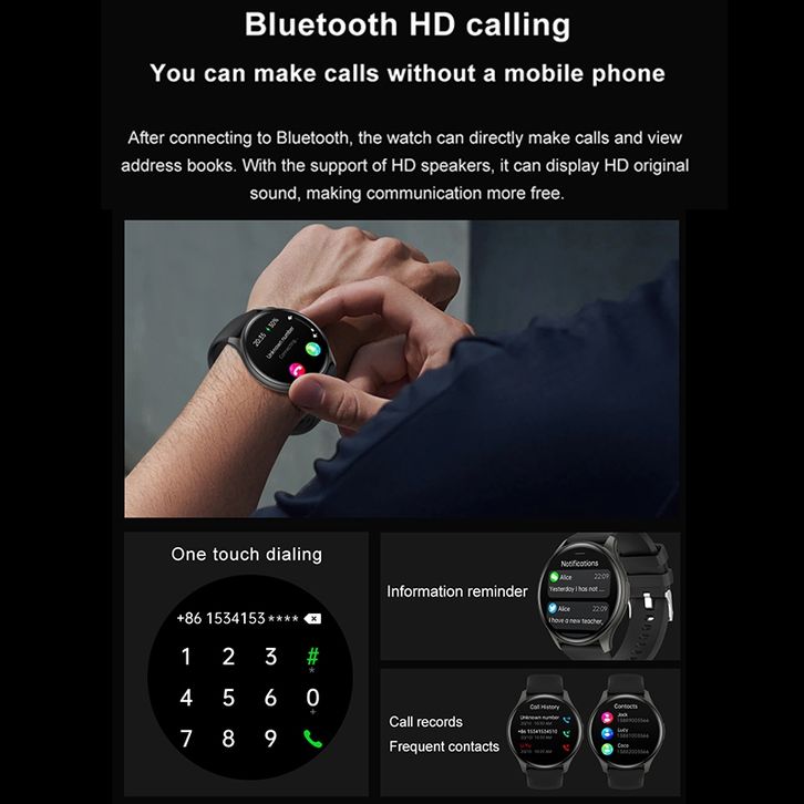 AMOLED ZW60 SMARTWATCH 1.43 Round Screen Incoming Call Alert Heart Rate Health Monitor Remote Control Message Reminder M