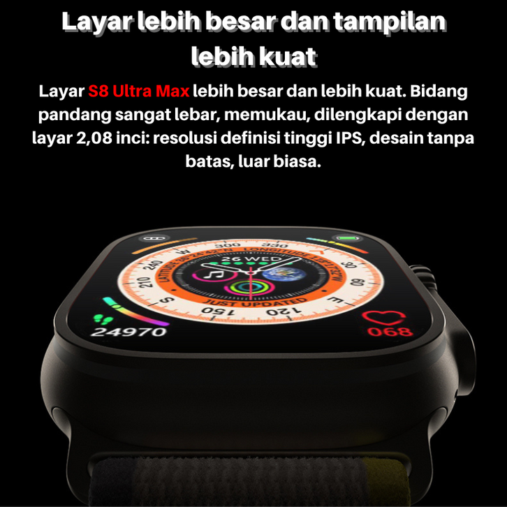 S8 ultra max Smartwatch 2.08 inch NFC Olahraga waterproof Deteksi Tekanan Darah Oksigen Darah jam tangan pintar pria Wan