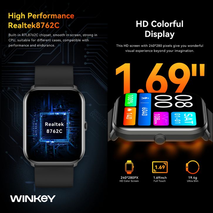 WINKEY Smartwatch Zeta 3ATM Long Battery Life 60+ Sport Modes - SWW02