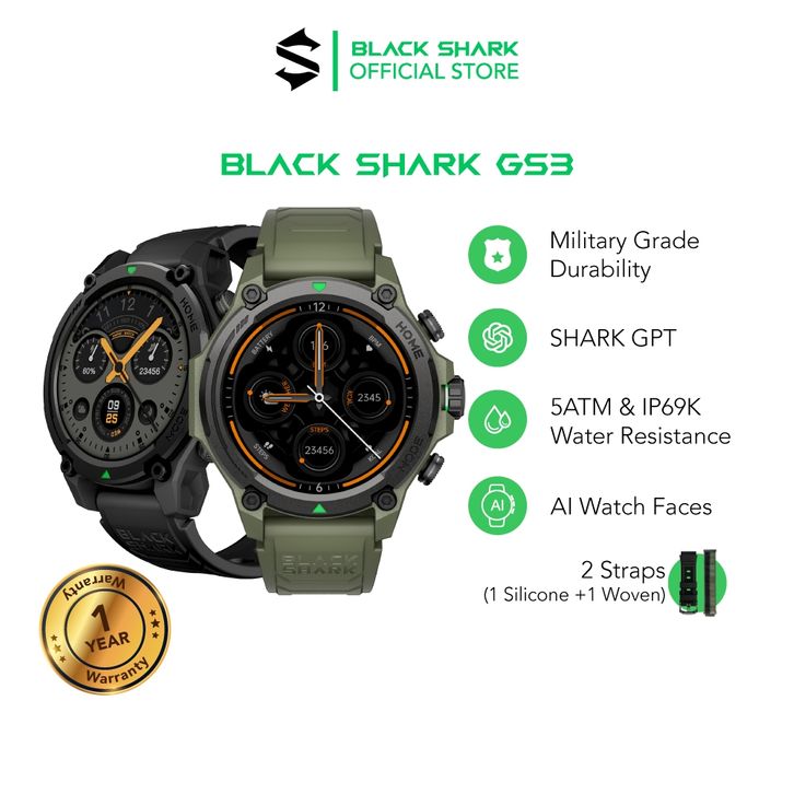 Black Shark Smartwatch GS3 | 21 Days Battery Life | 1.43’’ AMOLED Display | 5ATM & IP69K Water Resistance | Bluetooth Ca