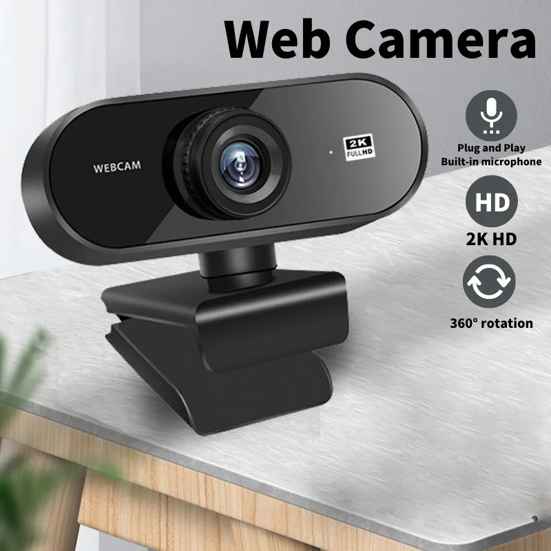 SPOIL Webcam Full HD 1440P 2K Kamera Sudut Lebar 90° Mikrofon Penghilang Kebisingan Bawaan USB Plug and Play Konferensi