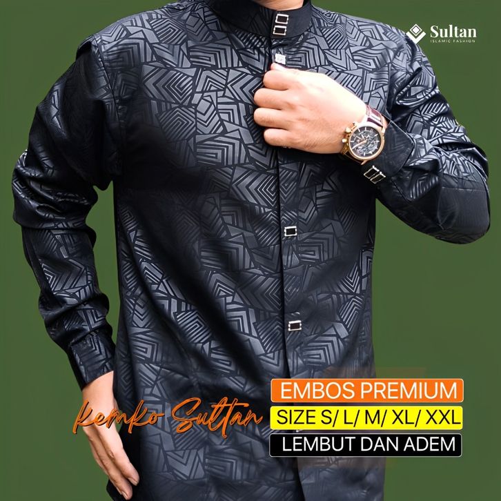 () Pakaian Terbaru Baju Muslim Kemeja Koko Kemko Pria Sultan Kasual Dewasa Hitam Lengan ootd Panjang Kurta Embos