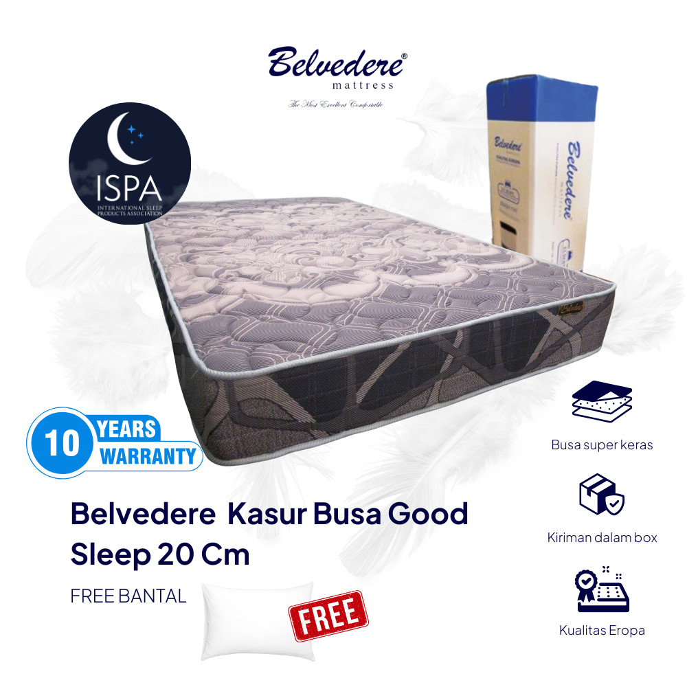 Kasur Busa Belvedere Good Sleep 20cm – D28 Black Charcoal Foam | Free Bantal & Box | Mattress in a Box Premium