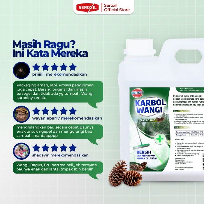 Terlaris KLINXY Karbol Pel Lantai Antibacterial Wangi Sereh Lemon 1 Liter Promo