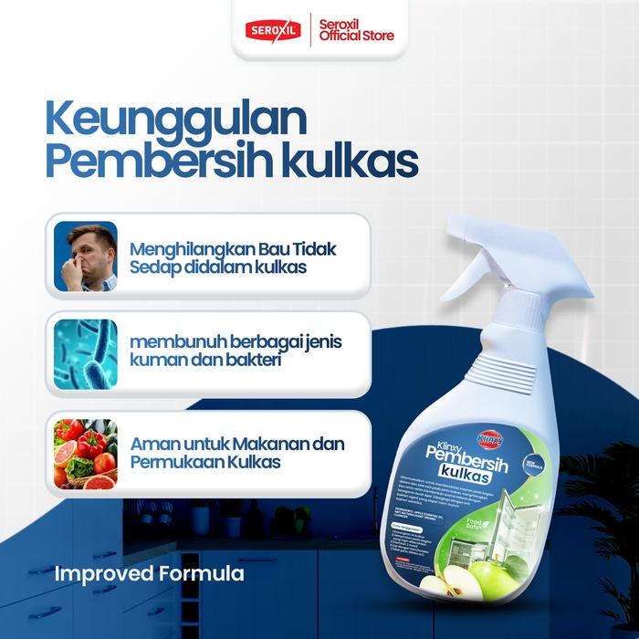 Terlaris Klinxy Cairan Pembersih Kulkas & Penghilang Bau Kulkas Freezer Refrigerator 450ml Promo