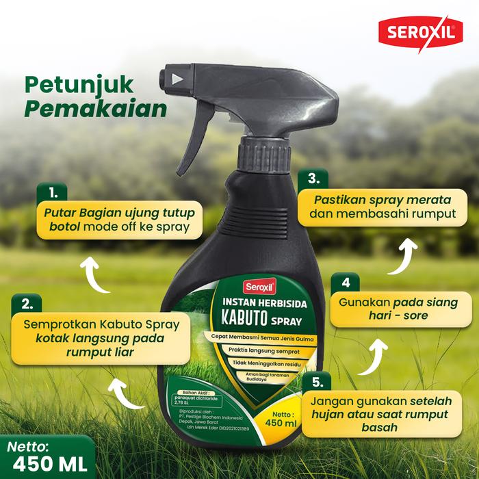 Promo Kabuto Cairan Pembasmi Rumput Liar Gulma Semprot Instan 450ml (Seroxil Hijau Spray - Standar Promo
