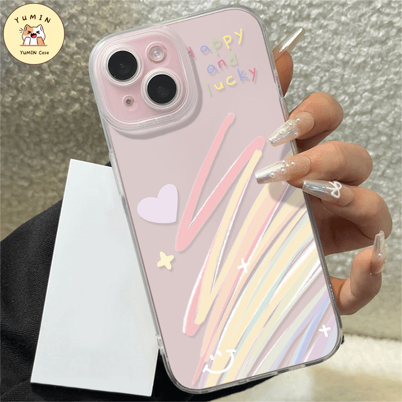 Casing Grafiti Gradien Cinta Hati Manis Dan Segar Untuk Perempuan Kompatibel Untuk IPhone 11 16 15 13 14 12 Pro Max XR X